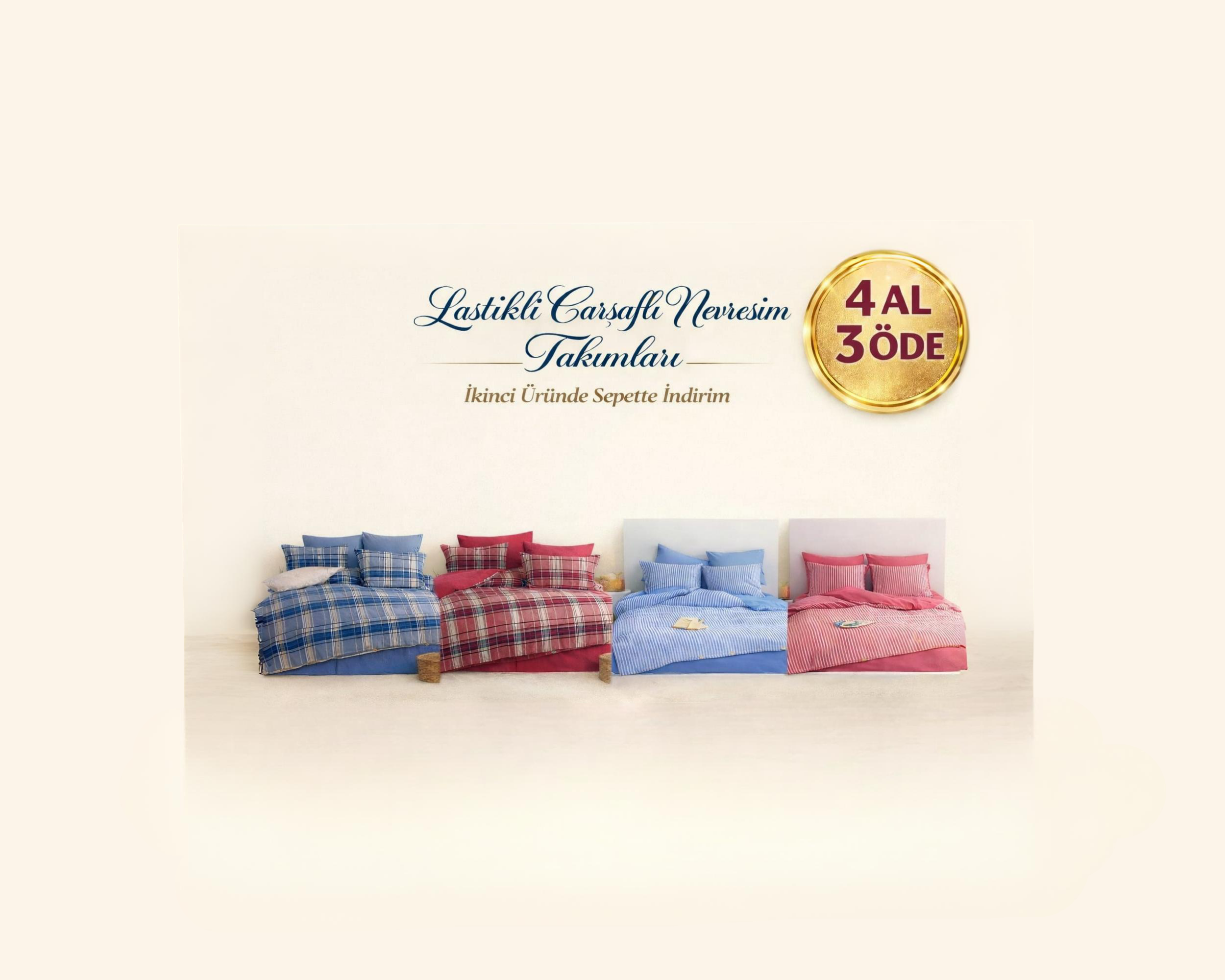 Dovira Ekoseli Pamuklu Lastikli Çarşaf Takımı 180x200