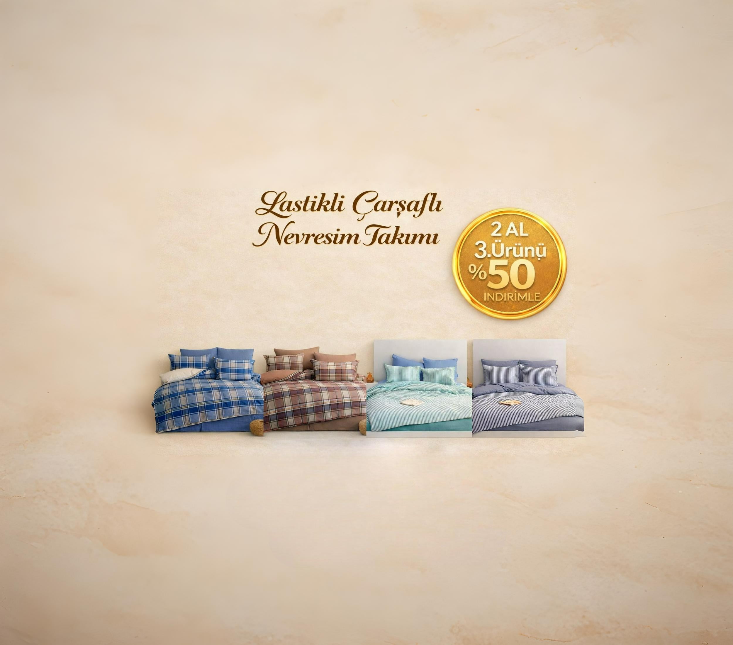 Ranforce Lastikli Çarşaflı Çift Kişilik Nevresim Takımı Cappuccino