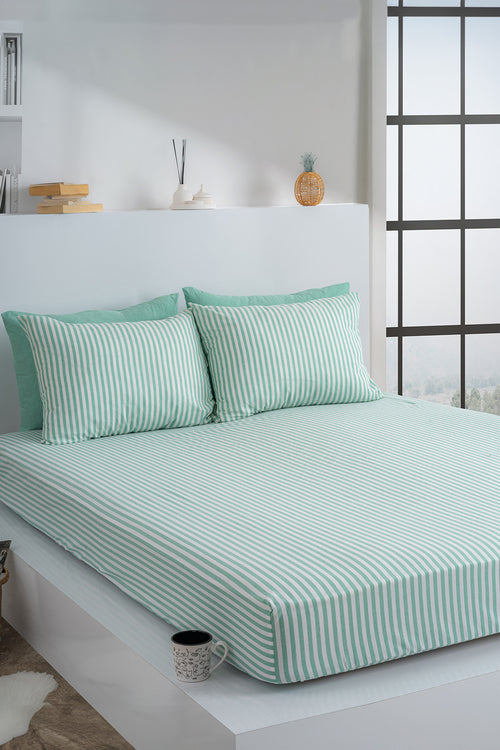 Ranforce Lastikli Çarşaflı Çift Kişilik Nevresim Takımı Yeşil