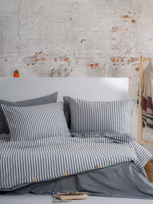 - Çizgili deseniyle modern ve şık bir görünüm kazandırırken, antrasit rengi her yatak odasına kolayca uyum sağlar.