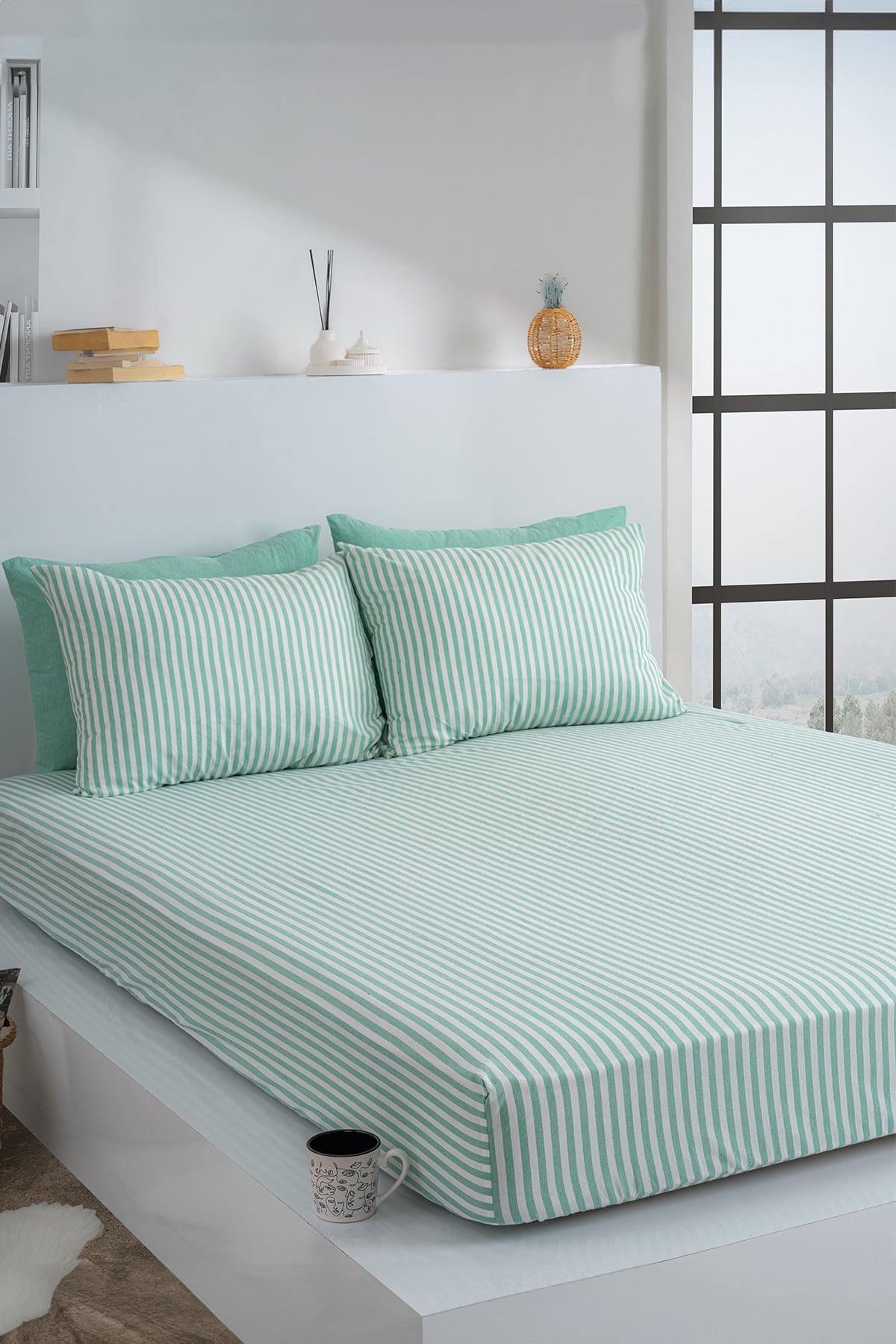 Dovira Çizgili Pamuklu Lastikli Çarşaf Takımı 160x200