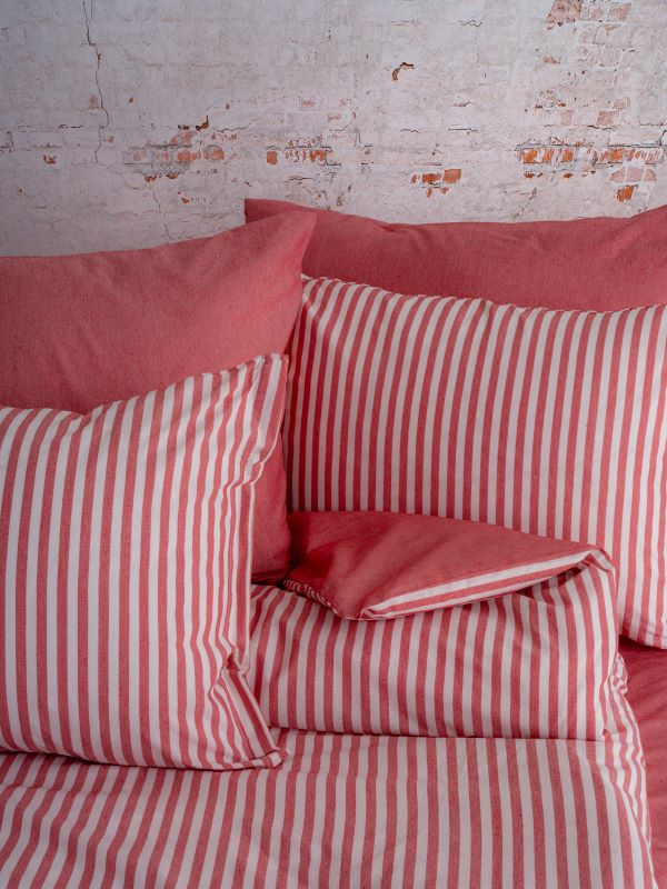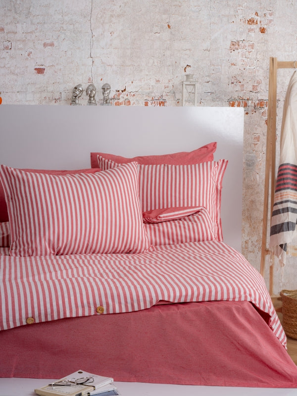 Dovira Kırmızı Çizgili Tek Kişilik Pamuklu Nevresim Takımı (Çarşafsız) 160X220