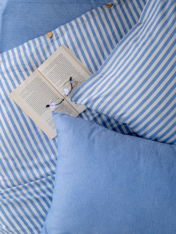 Dovira Mavi Çizgili Çift Kişilik Pamuklu Nevresim Takımı (Çarşafsız) 200 x 220 cm