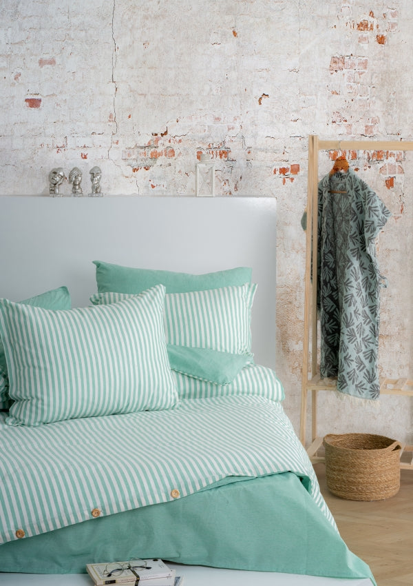 Dovira Yeşil Çizgili Çift Kişilik Pamuklu Nevresim Takımı (Çarşafsız) 200 x 220 cm